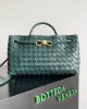 East-West Intrecciato leather top handle bag with sliding cross-body strap
