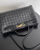 East-West Intrecciato leather top handle bag with sliding cross-body strap