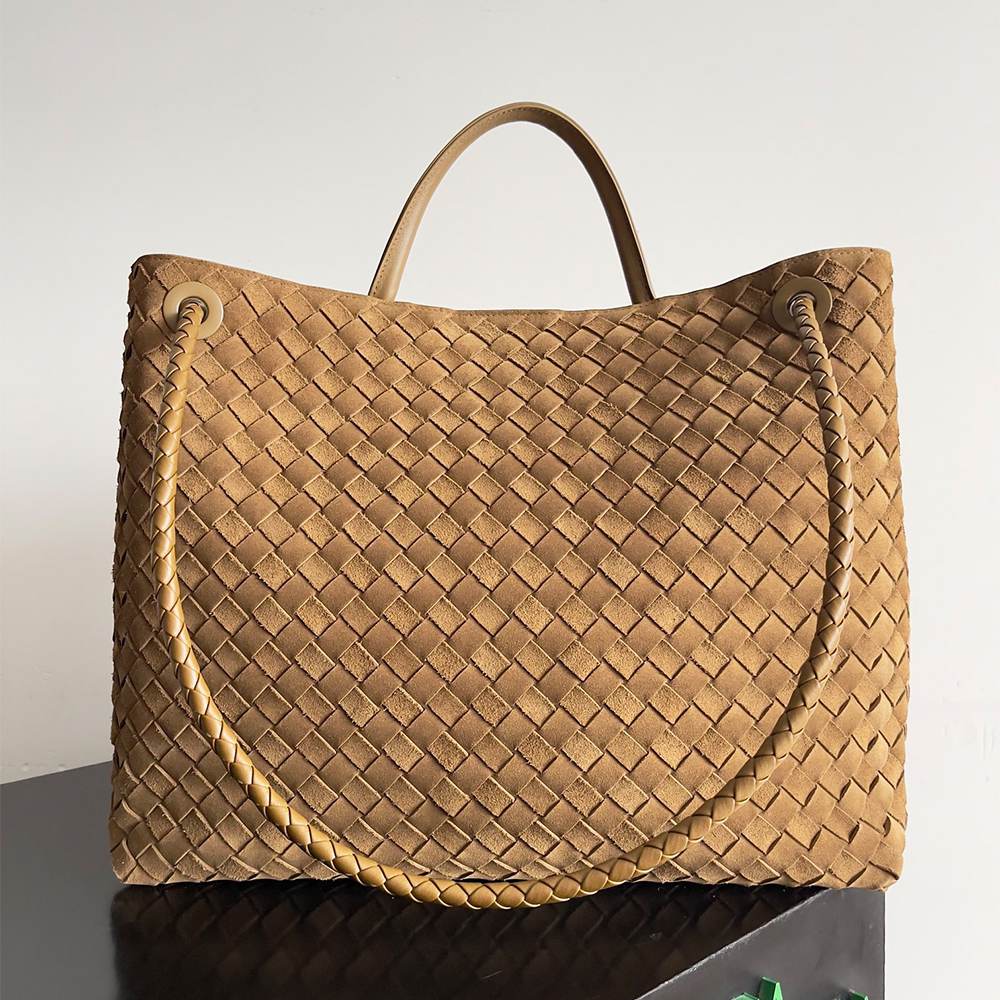Large Intrecciato suede top-handle bag with sliding cross-body strap
