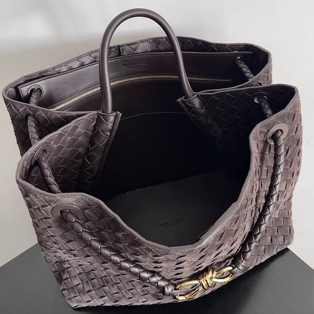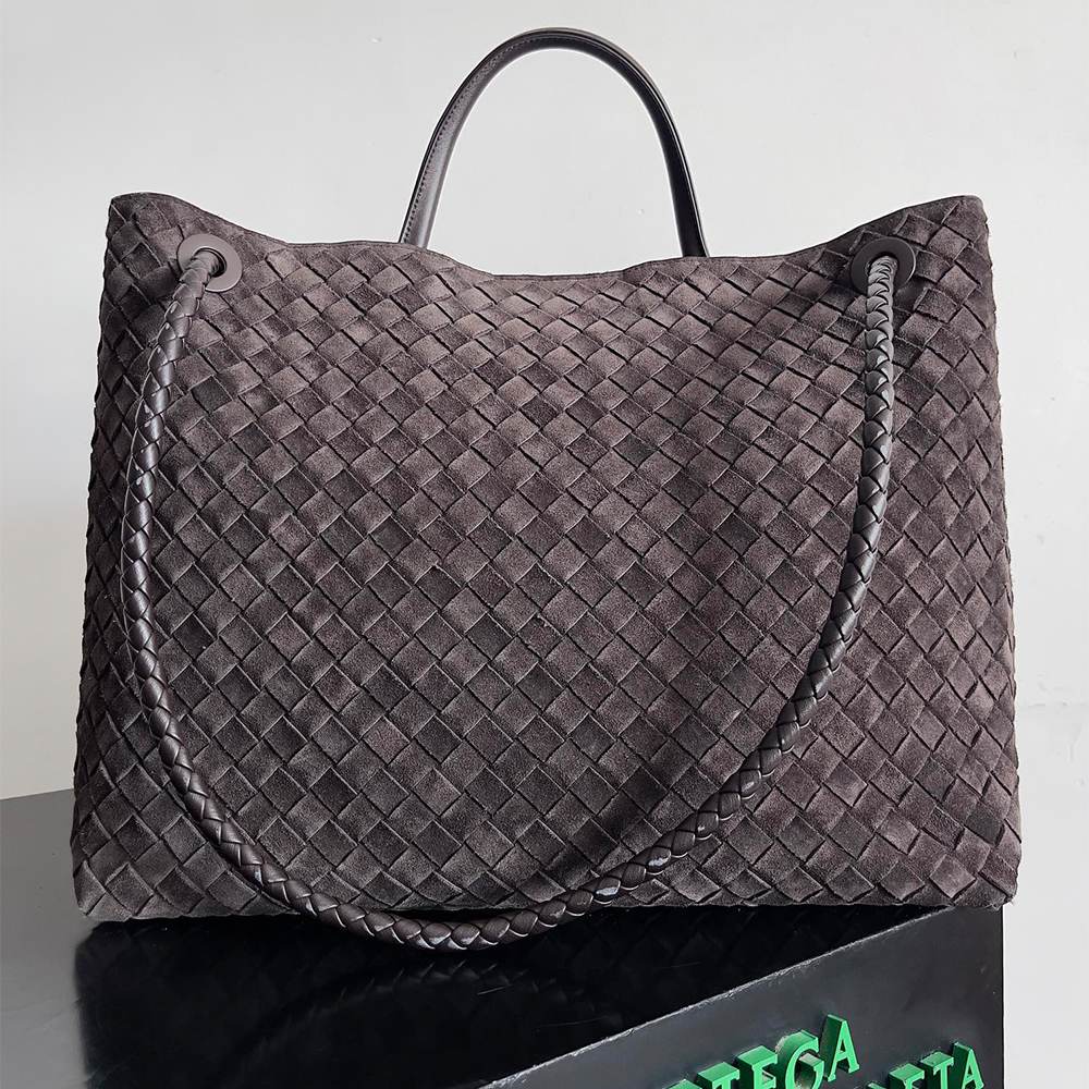 Large Intrecciato suede top-handle bag with sliding cross-body strap