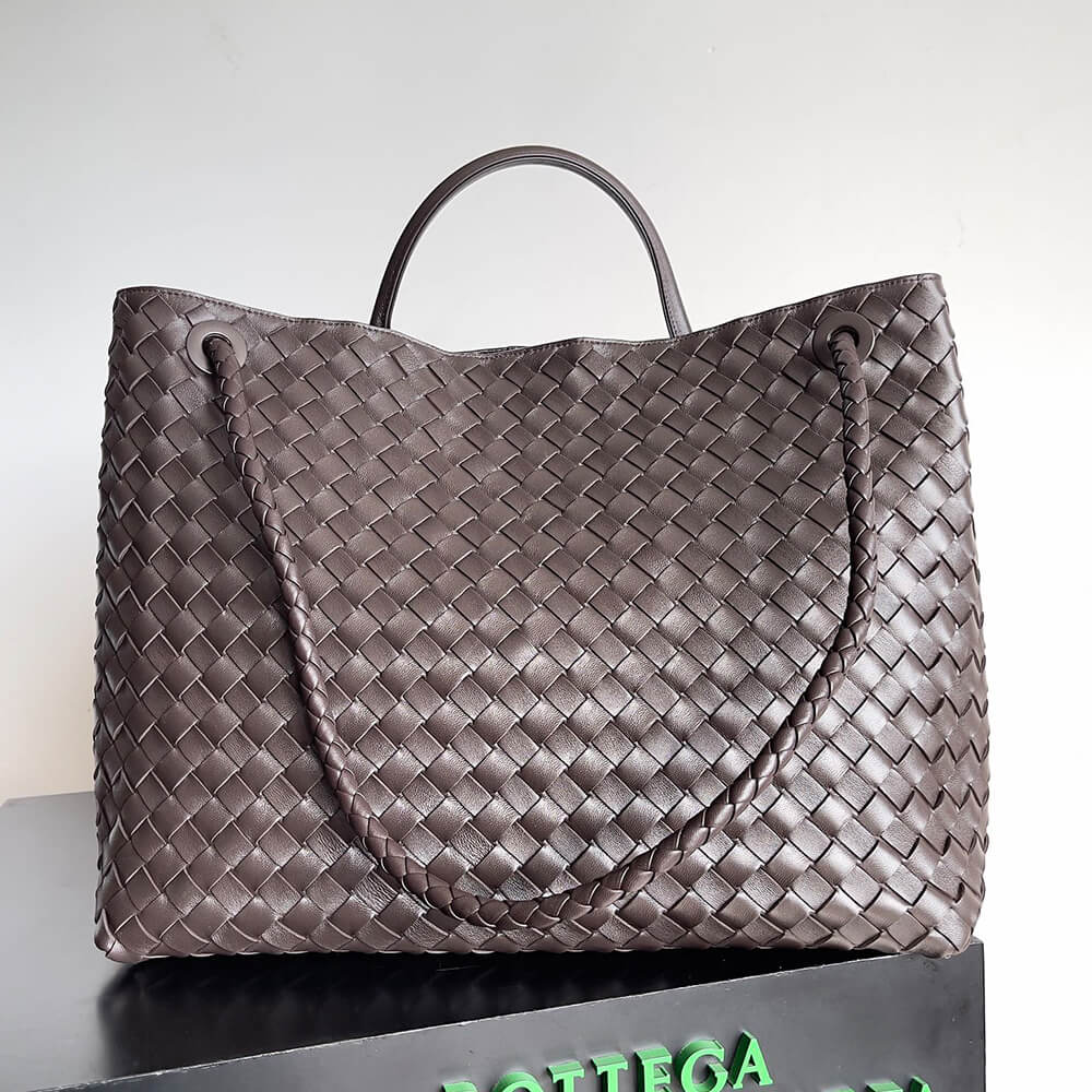 Large Intrecciato leather top handle bag with sliding cross-body strap