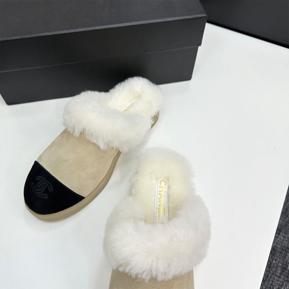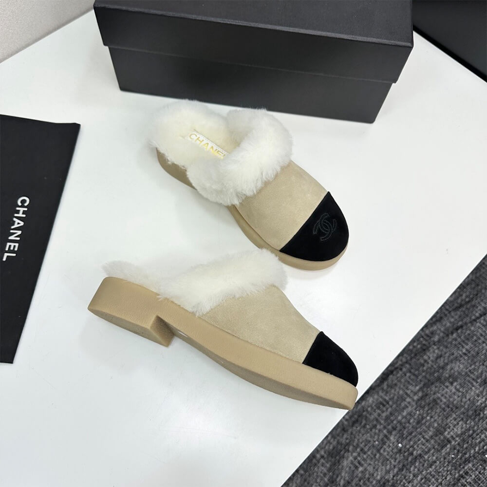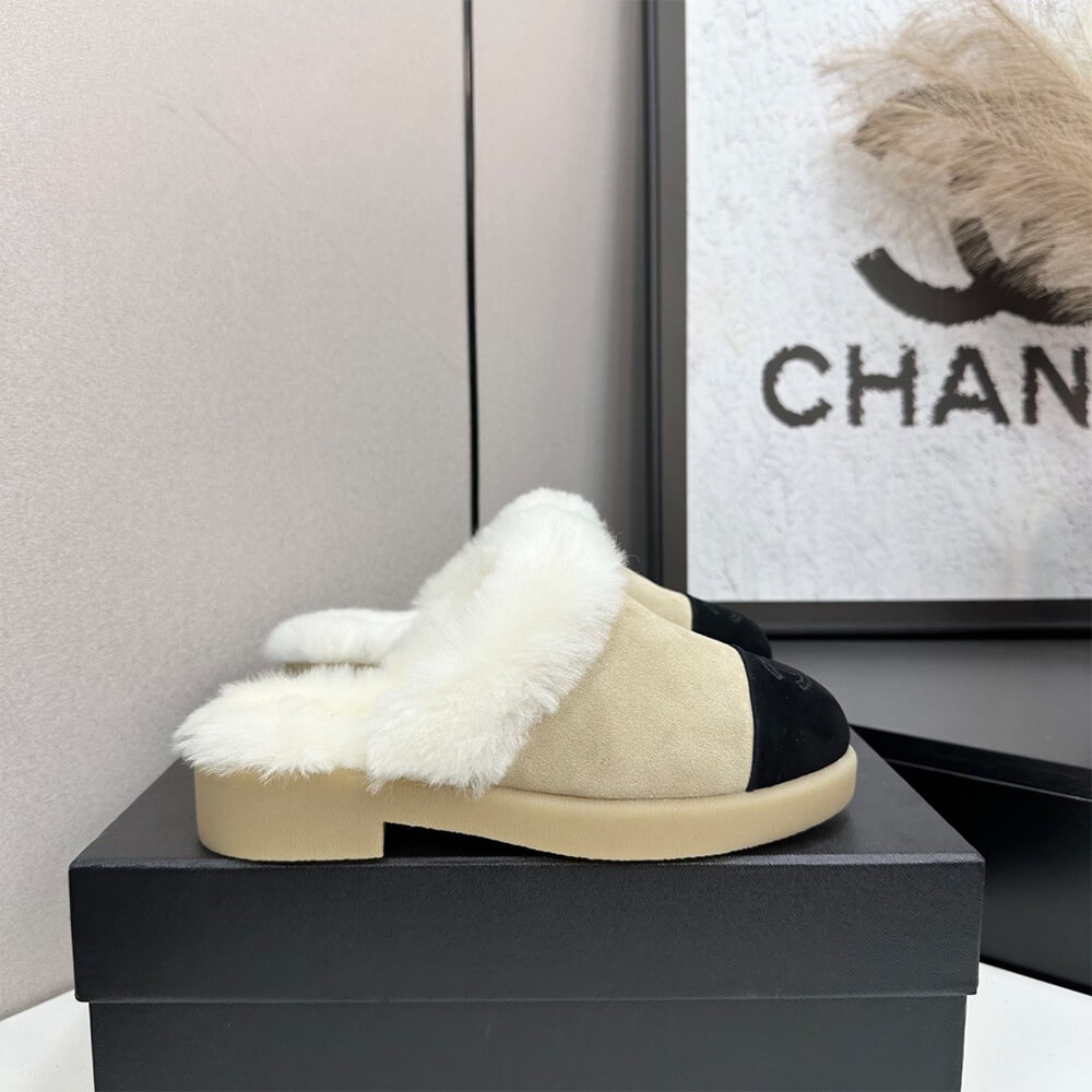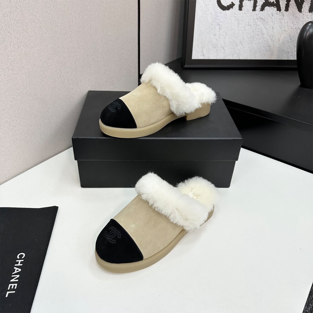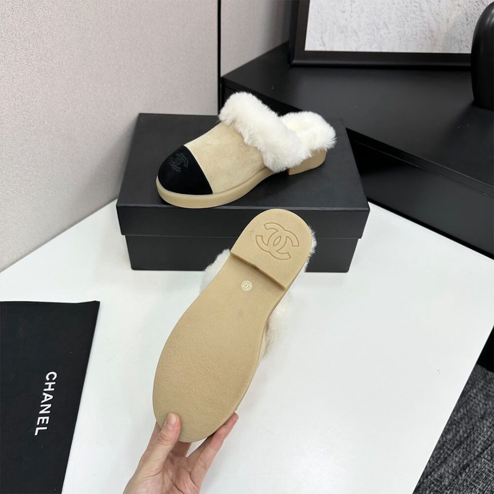 CHANEL Suede Shearling Mules