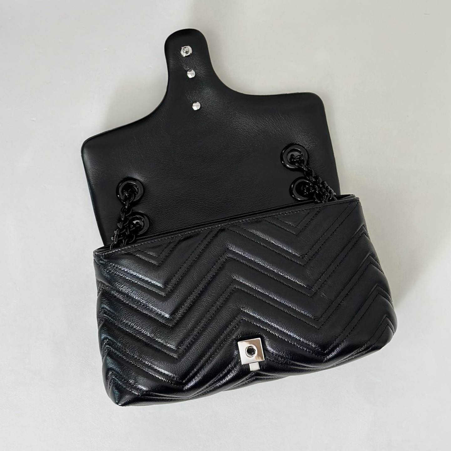 Black matelassé chevron nappa leather