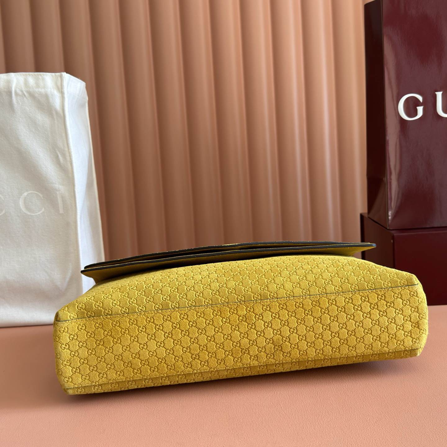 Yellow embossed GG suede