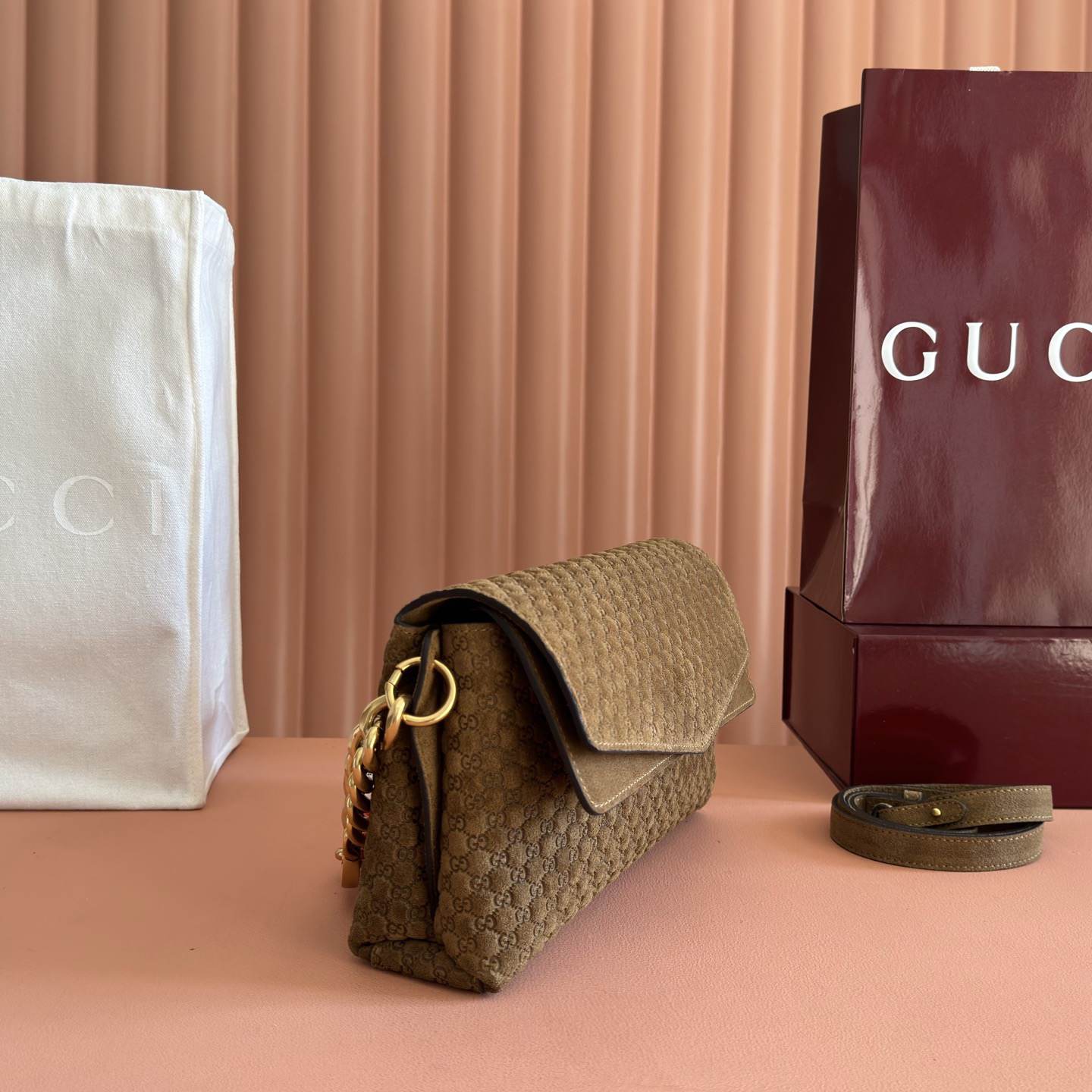 Brown embossed GG suede