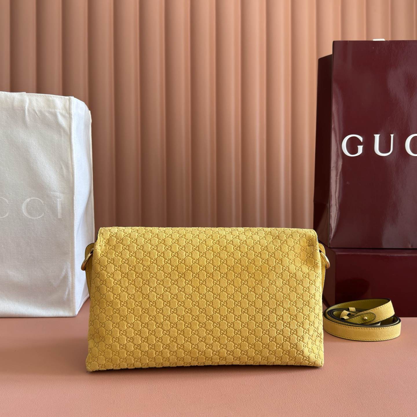 Mustard yellow embossed GG suede