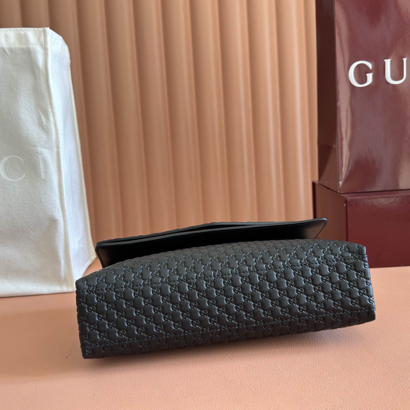 Black embossed GG grainy leather