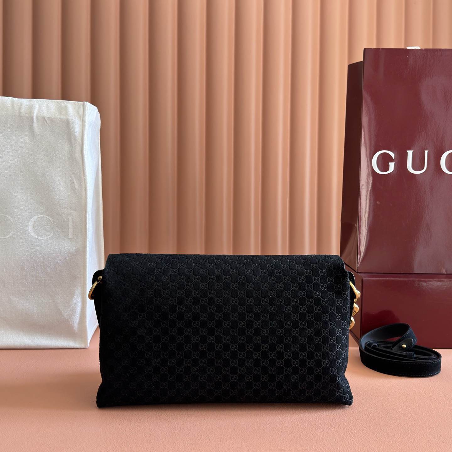 Black embossed GG suede
