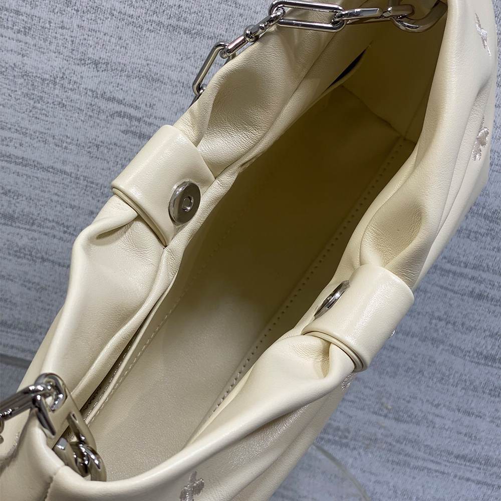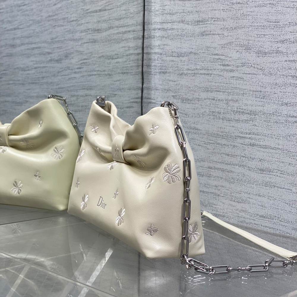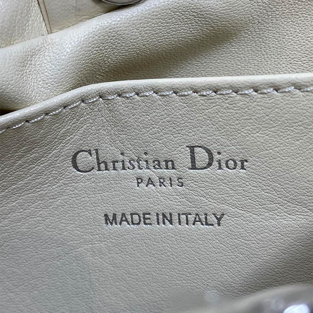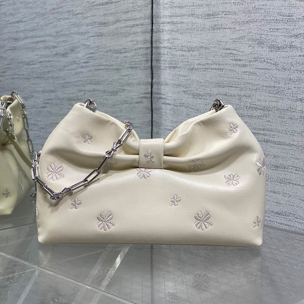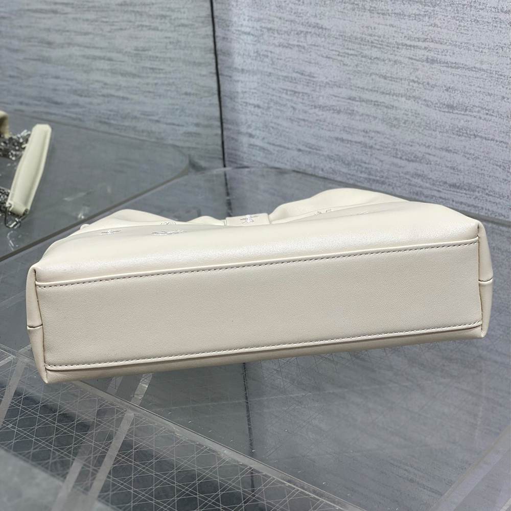 White Dior Clover Embroidered Lambskin